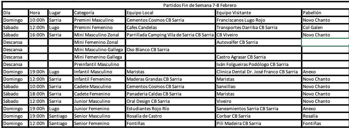 Deporte fin de semana 7 e 8 de febreiro